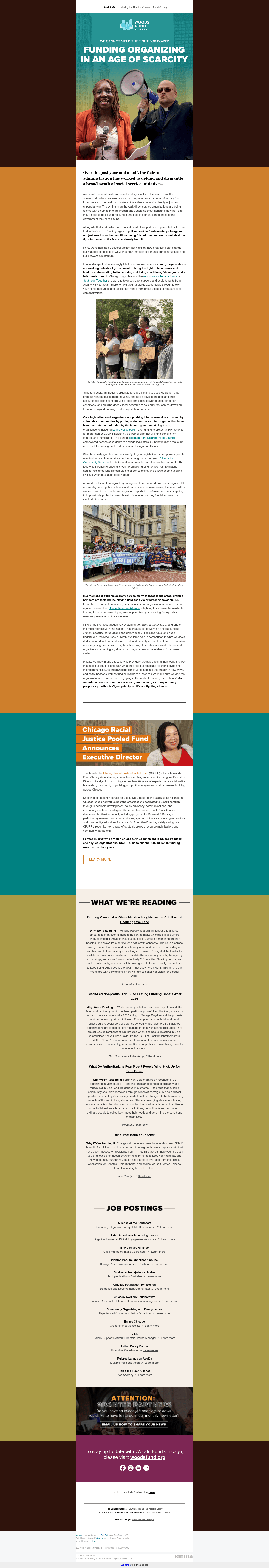 Our April newsletter features an overview of the ways organizers are fighting to resource our communities in a moment of scarcity — and we welcome incoming CRJPF Executive Director Katelyn Johnson. Read on for what we’re reading, and job openings across the sector.